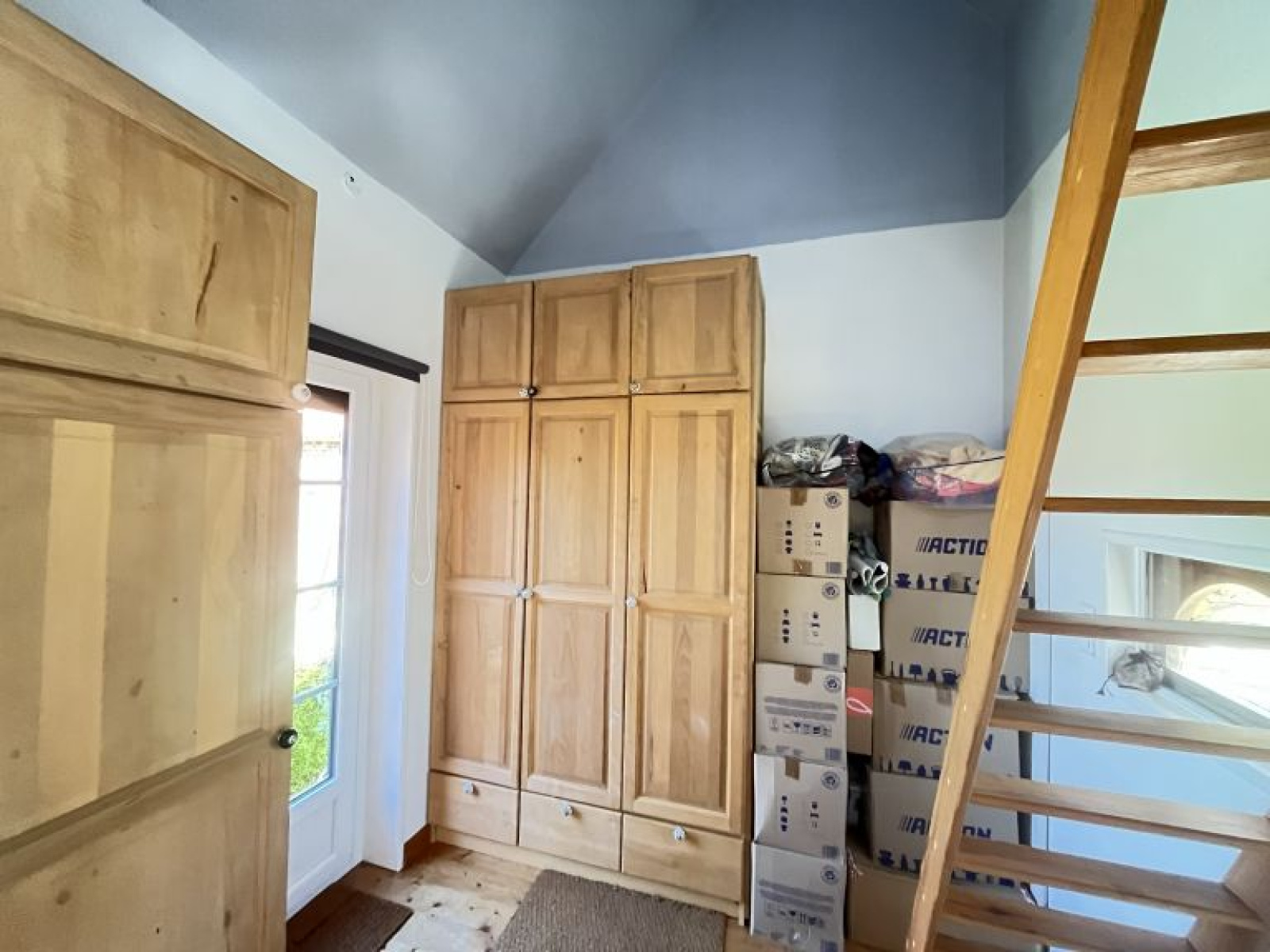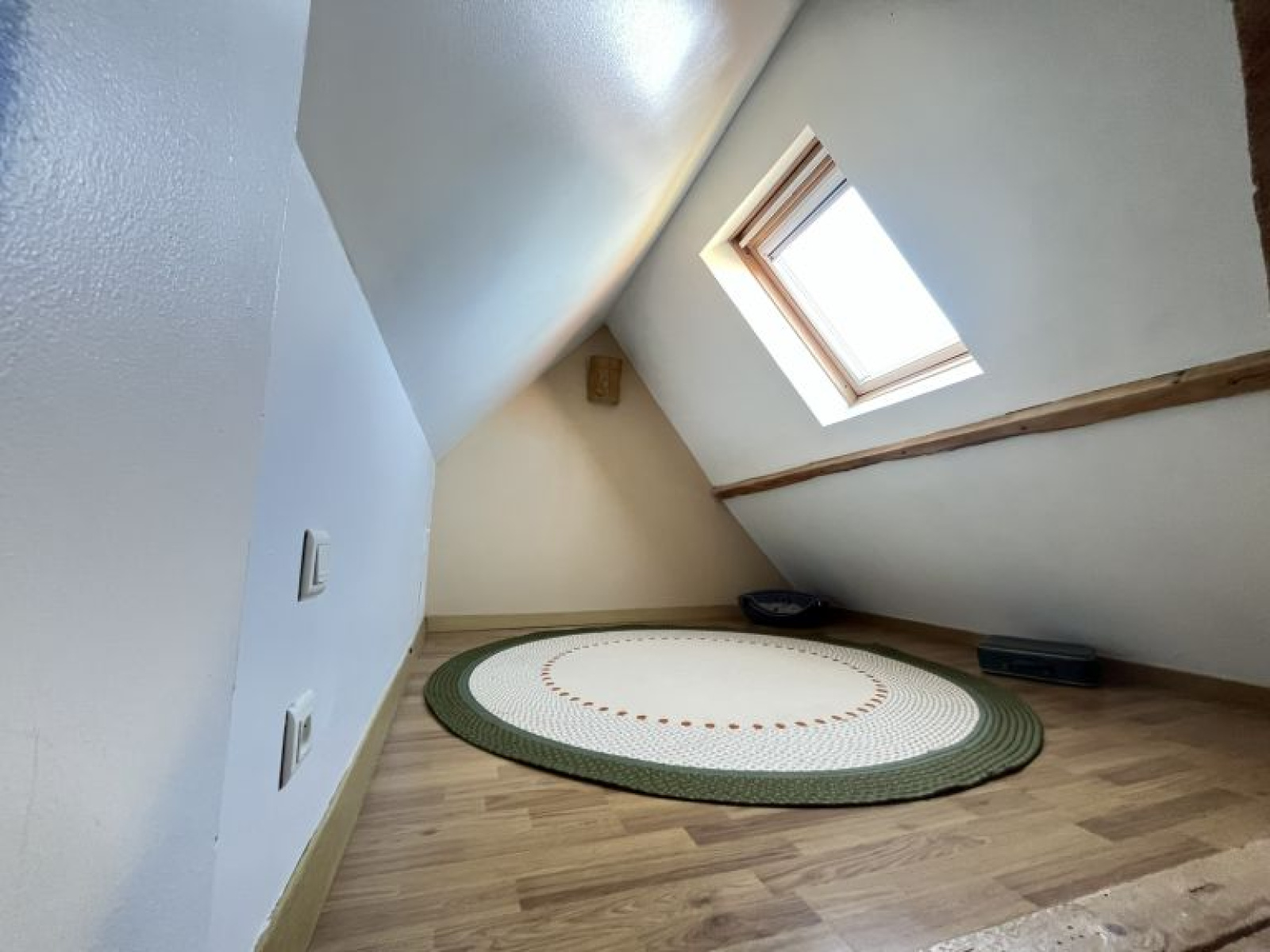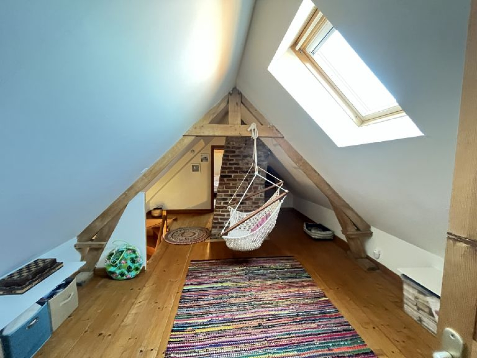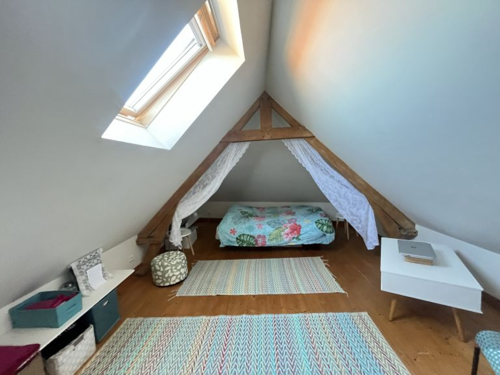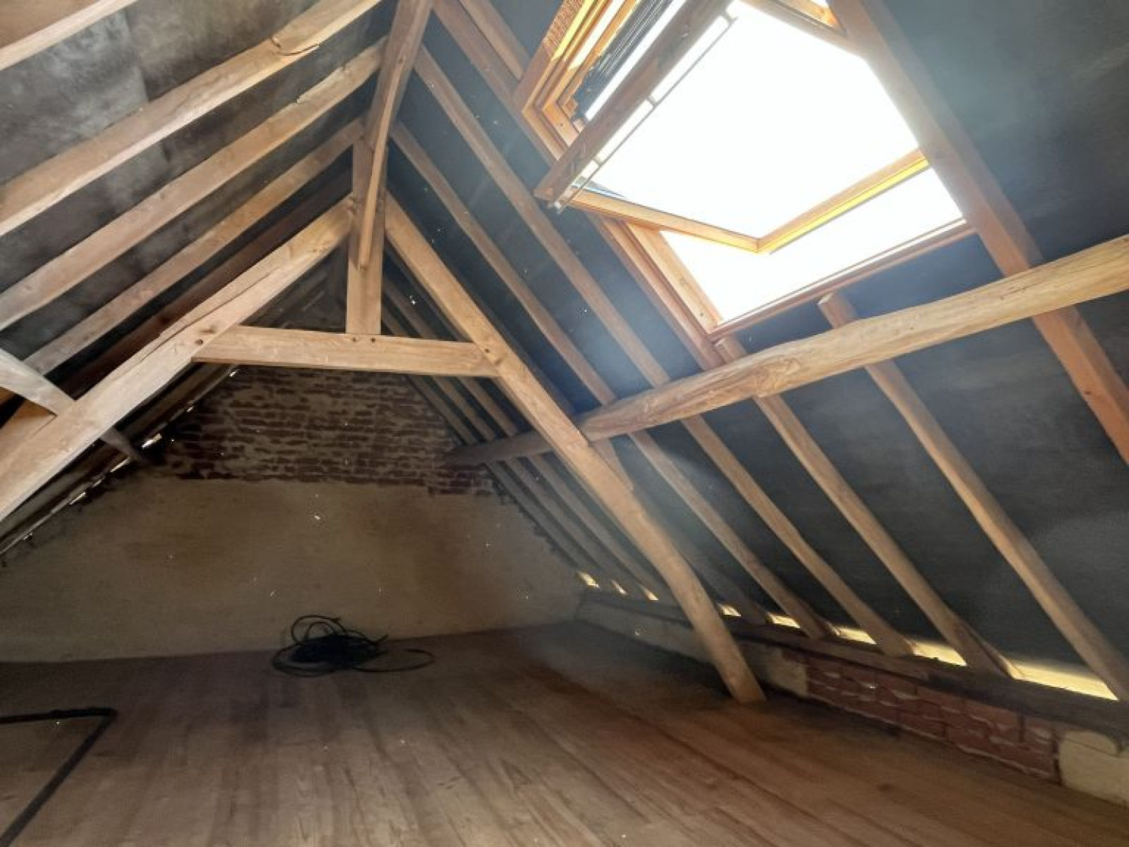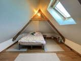 À l’étage : palier desservant 2 belles chambres mansardées. Cave.