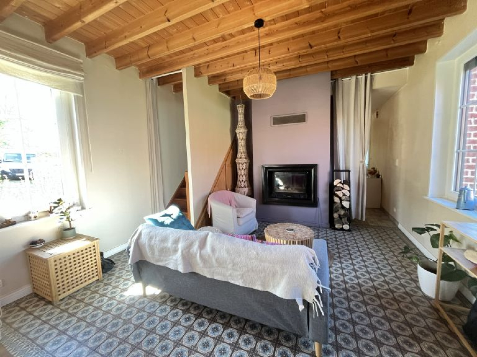Elle se compose d’un séjour double chaleureux avec poêle à pellets, insert, poutres apparentes et carrelages anciens, d’une cuisine équipée avec îlot central, d’un bureau traversant, d’un cellier et d’une mezzanine.